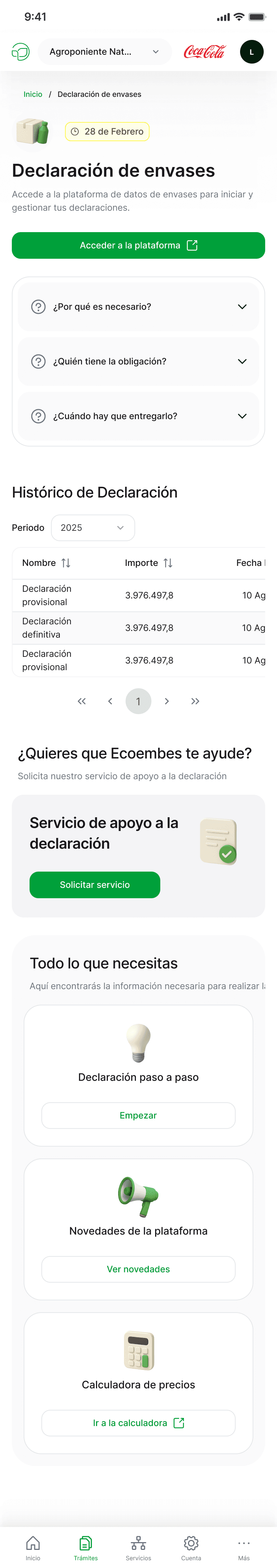 Flujo unificado y robusto para procesos críticos como el IPA, PEPE y el Registro de Productores, con ayuda técnica integrada en cada paso.